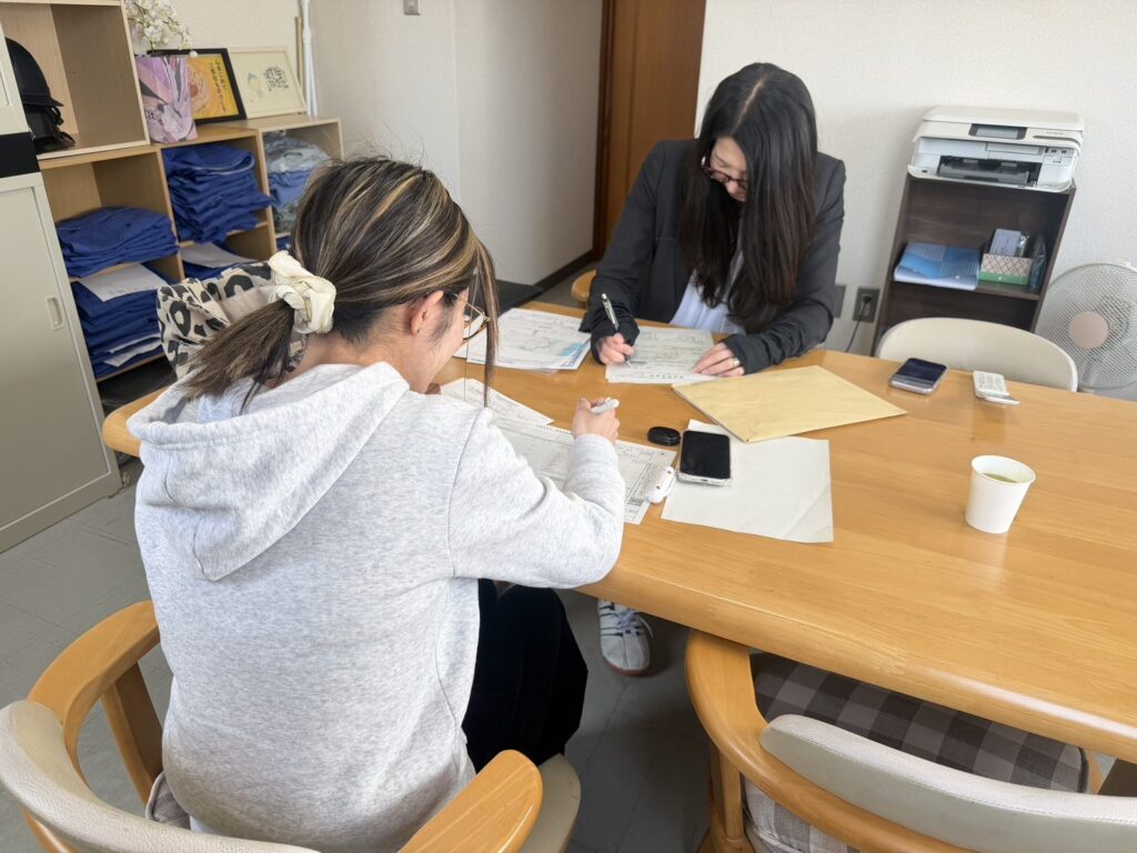 お話してお仕事先を担当者と決めました。何か、困った時は私たちが全力サポートしていきます。